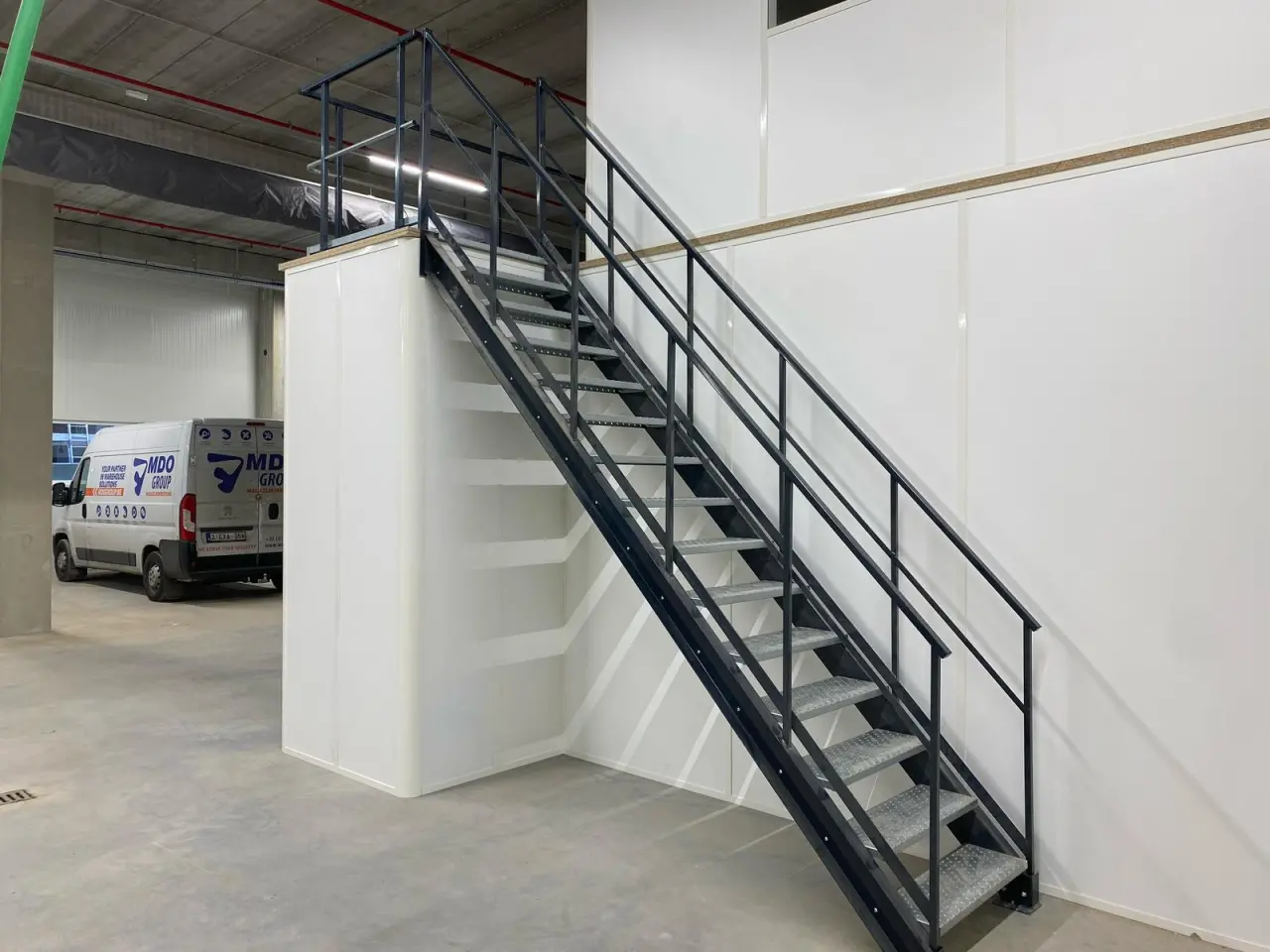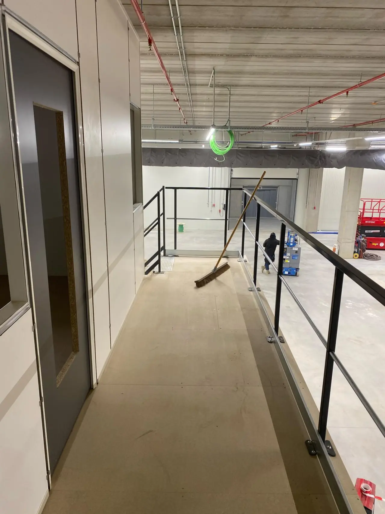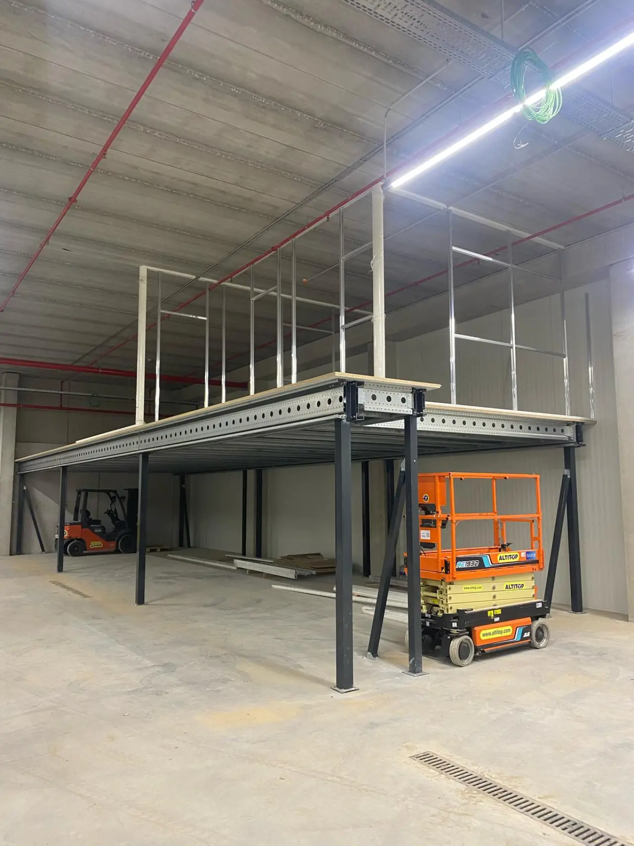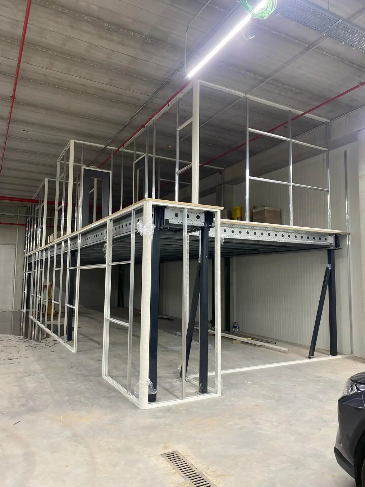 For one of our esteemed clients, we built a mezzanine floor, also known as a platform. This project aimed to create additional space for office spaces, both at the bottom and top of the mezzanine floor.
