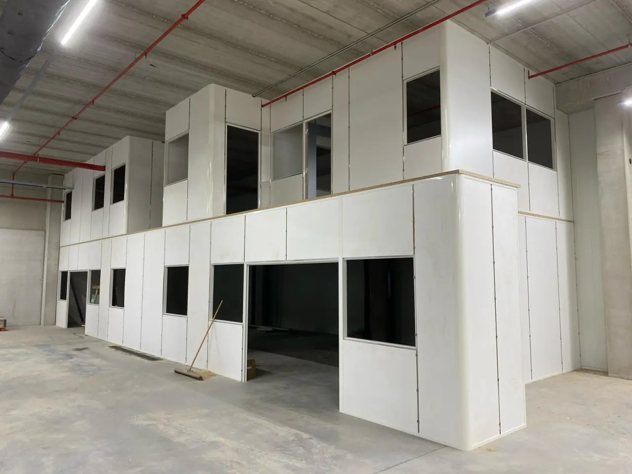 Our team of experienced structural engineers and logistics experts worked closely together to successfully complete this project. We assembled industrial walls to build sturdy and functional office spaces. These spaces provide a comfortable and efficient workplace, perfectly tailored to the client's needs.