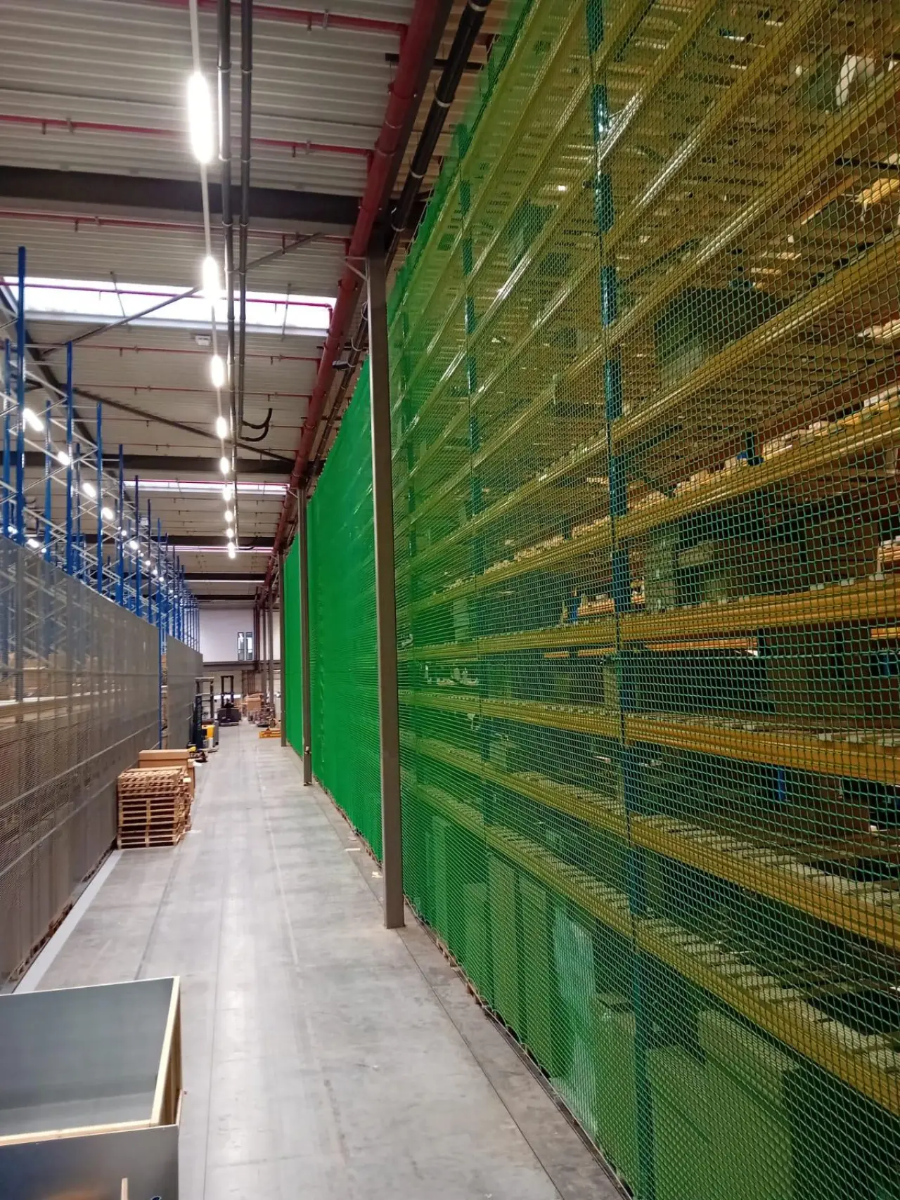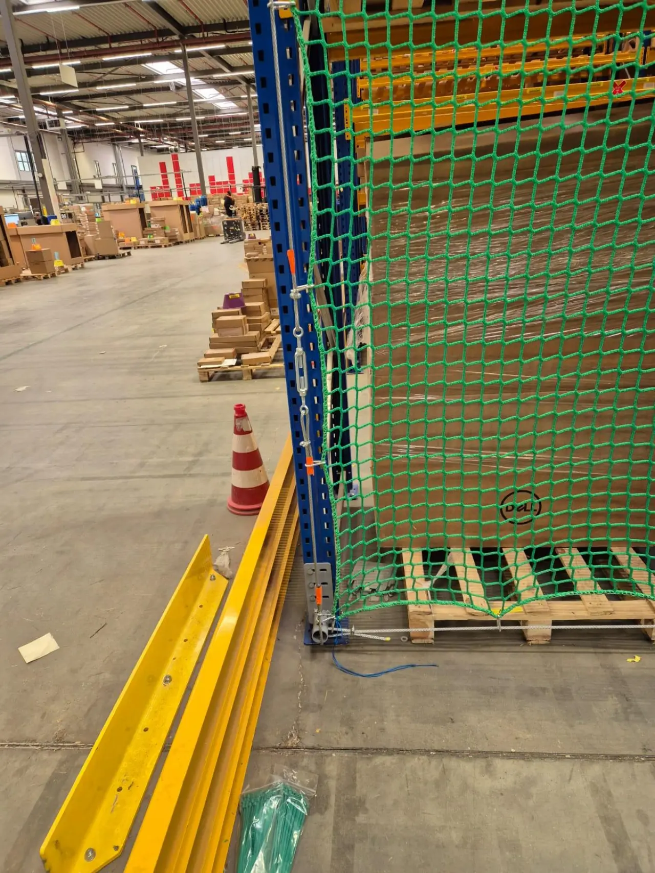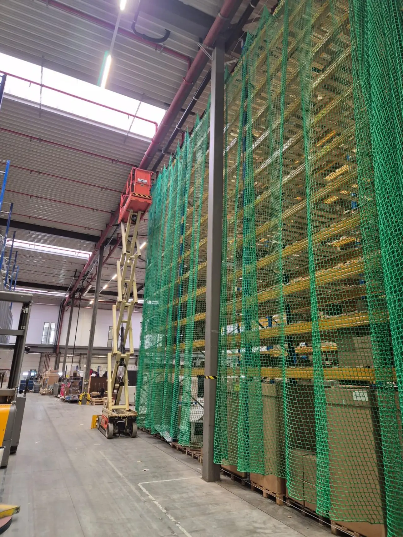 At MDO Group, we deliver solutions that make your warehouse safer and more productive. For a recent client, we installed fall protection in the form of safety nets behind pallet racks. These nets prevent goods from falling to the ground, ensuring optimal protection for both products and employees.