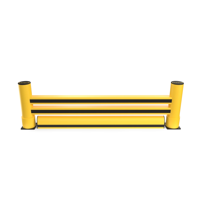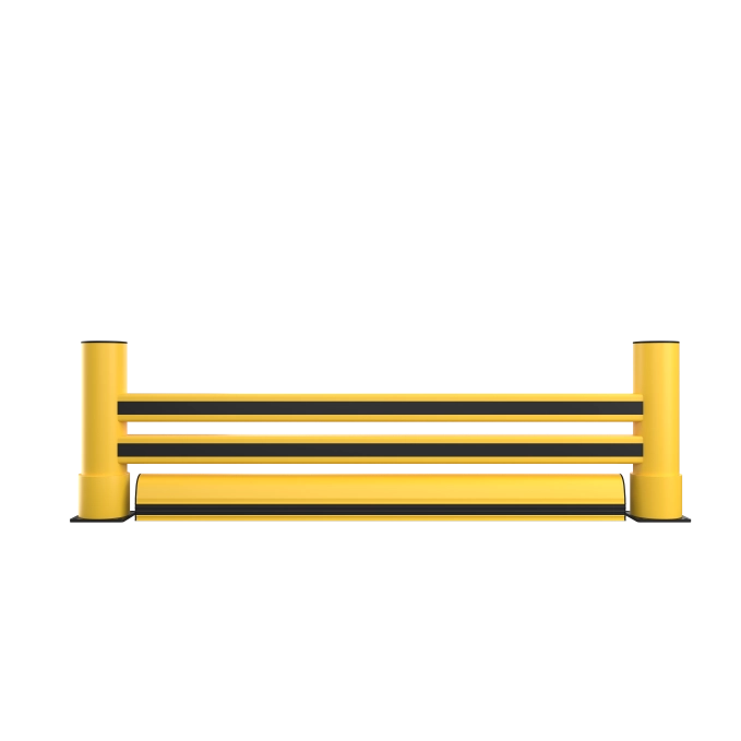 Designed for maximum protection, this barrier features reinforced impact resistance, making it highly effective in high-traffic warehouse environments. The added kerb barrier provides extra defense against forklift fork impacts at ground level, preventing damage to both the barrier and racking system.